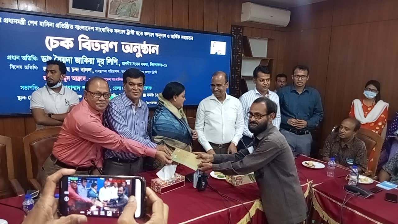 কিশোরগঞ্জে ১৬ জন সাংবাদিককে বিভিন্ন অংকের আর্থিক অনুদানের চেক প্রদান করা হয়। কিশোরগঞ্জের জেলা প্রশাসক মোঃ শামীম আলমের সভাপতিত্বে কিশোরগঞ্জ-১ (সদর ও হোসেনপুর) আসনের সংসদ সদস্য ডাঃ সৈয়দা জাকিয়া নূর লিপি প্রধান অতিথি হিসেবে উপস্থিত থেকে অসুস্থ ও অসহায় ১৬ জন সাংবাদিককে বিভিন্ন অংকের অর্থের চেক প্রদান করেন।