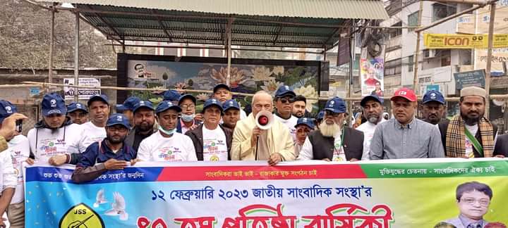 "মুক্তিযুদ্ধের চেতনায় / সাংবাদিক সমাজ ছুটে আয়" শ্লোগানে মুখরিত হয় কিশোরগঞ্জের শহর।
