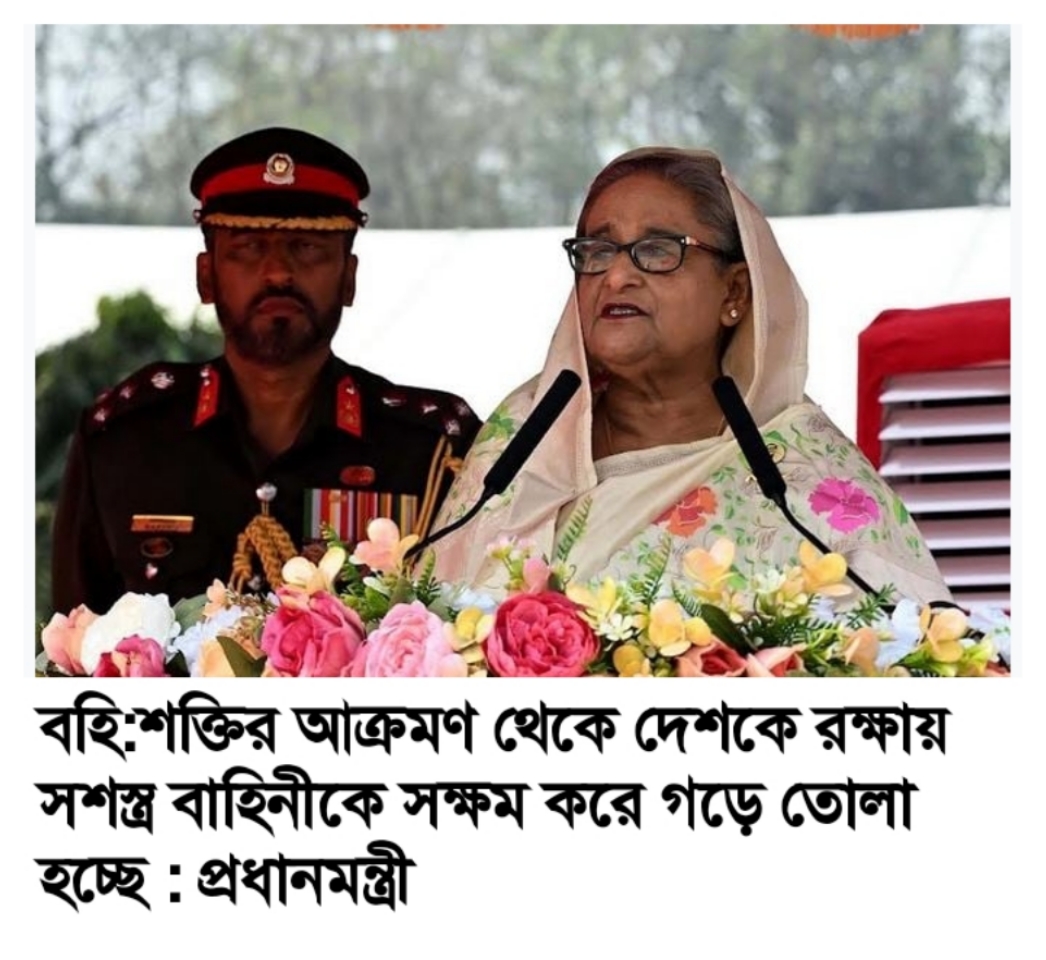 তিনি বলেন, দেশের প্রতিরক্ষা ব্যবস্থা সুদৃঢ় করতে তাঁর সরকার সিলেটে ১৭ পদাতিক ডিভিশন, রামুতে ১০ পদাতিক ডিভিশন এবং বরিশালে ৭ পদাতিক ডিভিশন প্রতিষ্ঠা করেছে। গত ৪ বছরে বিভিন্ন ফরমেশনের অধীনে ৩টি ব্রিগেড এবং ছোট-বড় ৫৮টি ইউনিট প্রতিষ্ঠা লাভ করেছে। সম্প্রতি মাওয়া-জাজিরাতে প্রতিষ্ঠিত হয়েছে শেখ রাসেল সেনানিবাস এবং মিঠামইন, রাজবাড়ী ও ত্রিশালে নতুন সেনানিবাস স্থাপনের কার্যক্রম চলমান রয়েছে। চট্টগ্রাম ও কক্সবাজারে আর্মি এভিয়েশনের ফরোয়ার্ড বেস এবং লালমনিরহাটে এভিয়েশন স্কুল নির্মাণের কাজও প্রক্রিয়াধীন রয়েছে। পাশাপাশি সেনাবাহিনীতে নতুন কম্পোজিট ব্রিগেড ও প্যারা কমান্ডো ব্রিগেড যুক্তকরণ এবং প্রতিটি বাহিনীর জন্য অত্যাধুনিক এবং যুগোপযোগী অস্ত্রশস্ত্র সংগ্রহ করার পদক্ষেপ নেয়া হেেয়ছে।