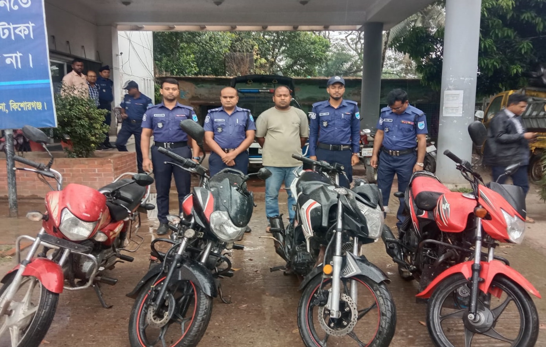 কিশোরগঞ্জের পাকুন্দিয়া থানা পুলিশ গোপন সংবাদের ভিত্তিতে চার মোটরসাইকেল সহ একজন চোরকে আটক করেছে।