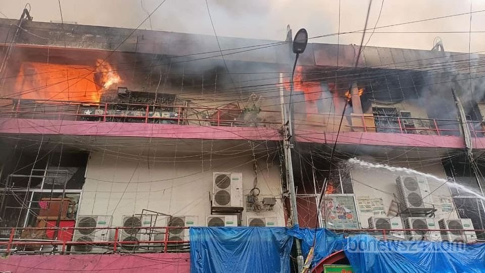 সেখানকার দ্বিতীয় তলা থেকে আগুন ছড়িয়ে পড়েছে বলে জানান নিউ মার্কেট থানার ওসি শফিকুল গণি সাবু।