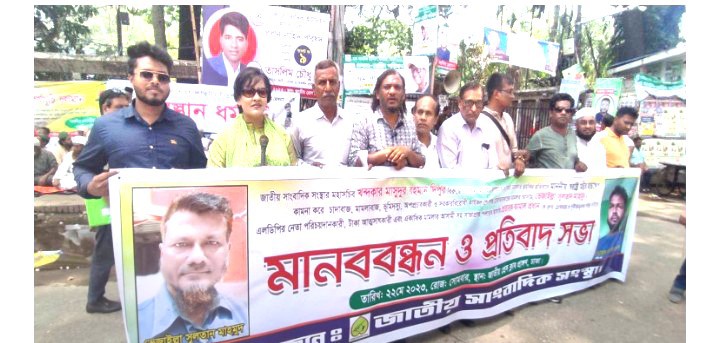 জাতীয় প্রেসক্লাবের সামনে সাংবাদিক সংস্থার মহাসচিব দিপুকে নিয়ে অপপ্রচারের প্রতিবাদে মানববন্ধন