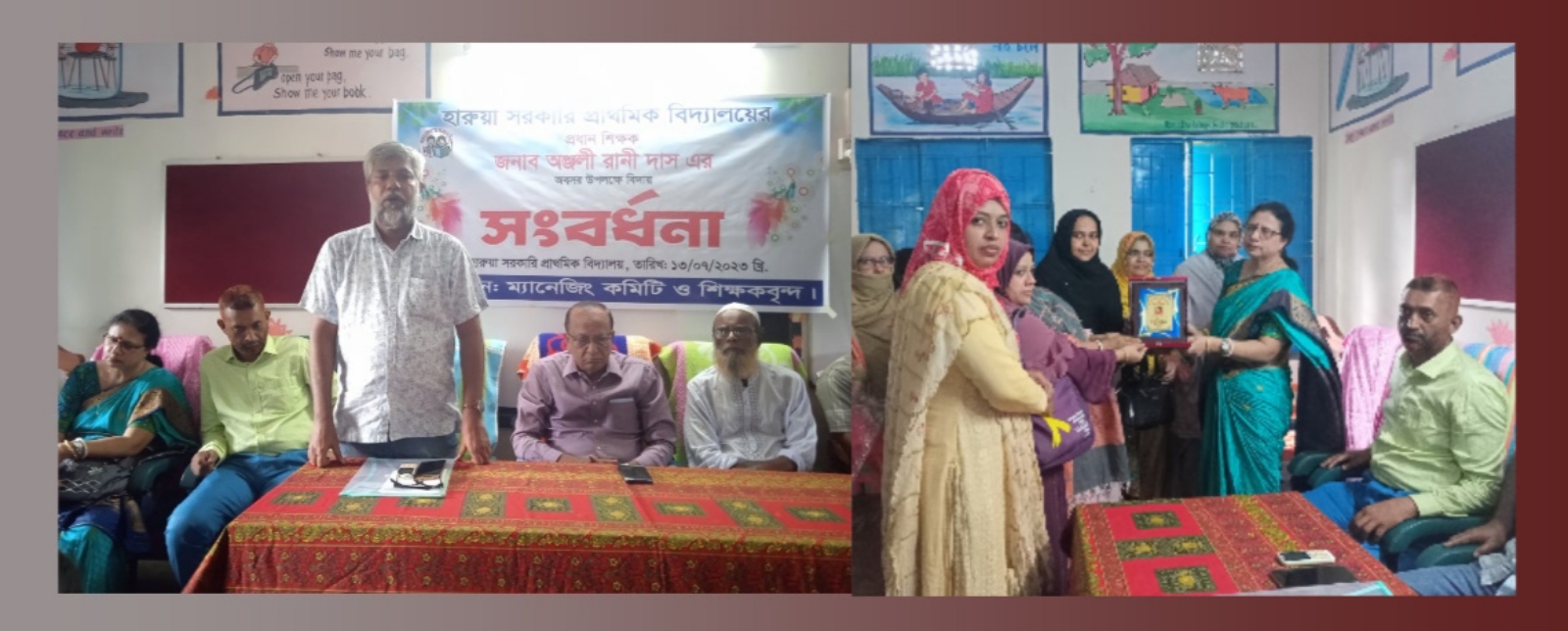 হারুয়া সরকারি প্রাথমিক বিদ্যালয়ের প্রধান শিক্ষক অঞ্জলী রানী দাস এর অবসর উপলক্ষে বিদায় সংবর্ধনা।