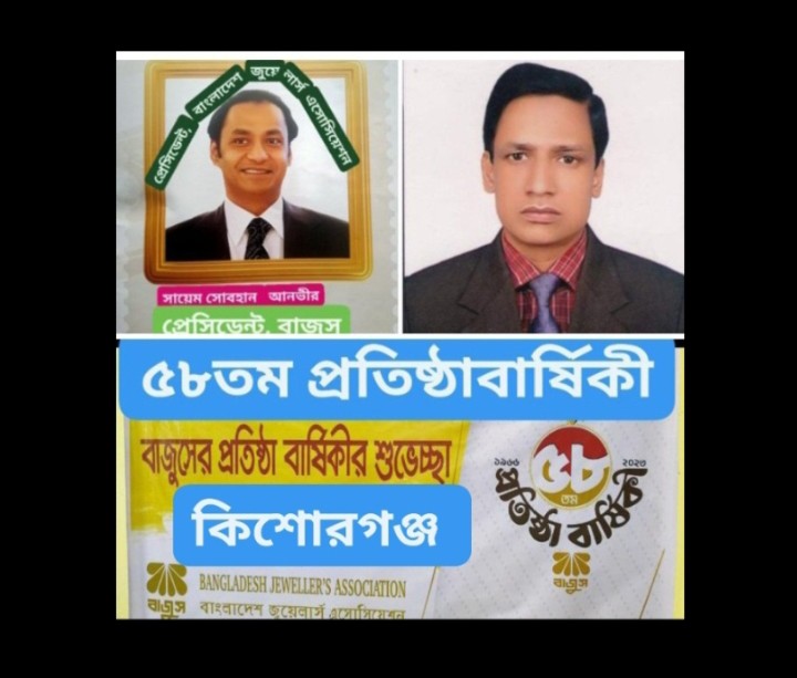 কিশোরগঞ্জ জেলা শাখা বাংলাদেশ জুয়েলার্স এসোসিয়েশন - বাজুস'র উদ্যোগে ৫৮তম প্রতিষ্ঠাবার্ষিকী পালিত হয়েছে।
