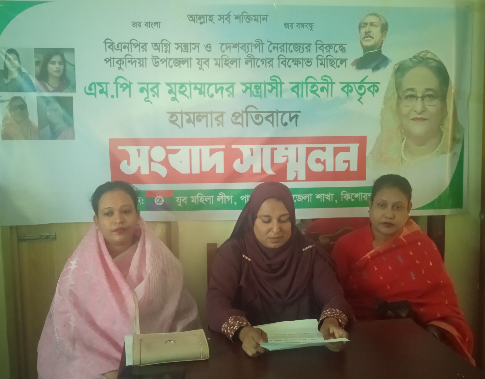 পাকুন্দিয়া উপজেলা যুব মহিলা লীগের নেত্রীবৃন্দের উপর সন্ত্রাসী হামলার প্রতিবাদে সংবাদ সম্মেলন অনুষ্ঠিত হয়েছে।
