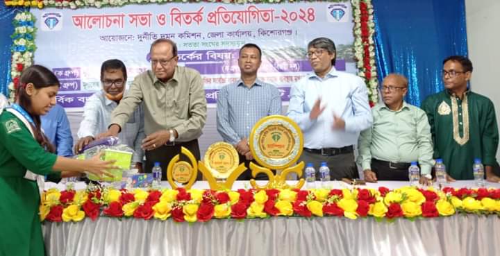 -এই স্লোগানের মধ্যদিয়ে এবং গণসচেতনতা সৃষ্টি ও সততা চর্চায় শিক্ষার্থীদের উদ্বুদ্ধ করার লক্ষ্যে দুর্নীতি দমন কমিশন ও জেলা প্রশাসন কিশোরগঞ্জ-এর সার্বিক সহযোগিতায় জেলা দুর্নীতি প্রতিরোধ কমিটি কিশোরগঞ্জ-এর আয়োজনে আজ ০৪ জুলাই ২০২৪ বৃহস্পতিবার সকাল ১০টায় কিশোরগঞ্জ সরকারি উচ্চ বালক বিদ্যালয় অডিটোরিয়ামে কিশোরগঞ্জ সদর উপজেলায় দুর্নীতি বিরোধী আলোচনা সভা ও বিতর্ক প্রতিযোগিতা অনুষ্ঠিত হয়।