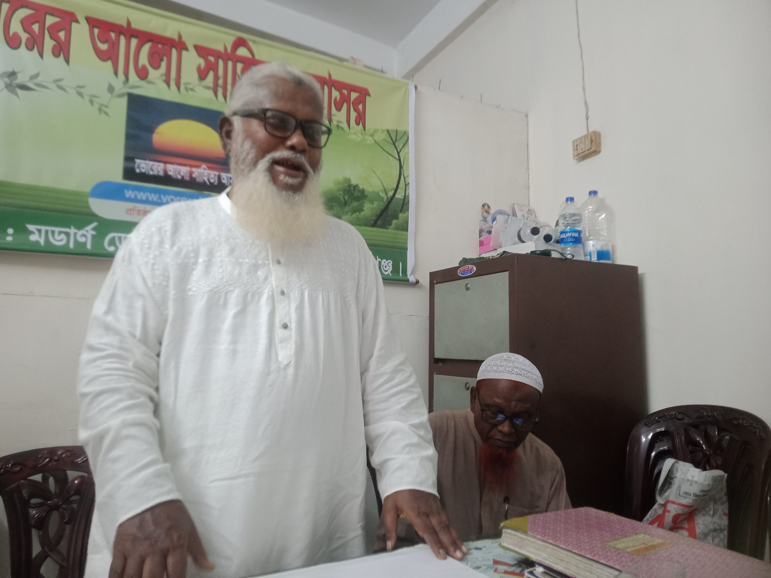 ভোরের আলো সাহিত্য আসরের ২১ বর্ষ পূর্তি উৎসবের পর ২য় সভাটি আজ কিশোরগঞ্জ থানা মার্কেটস্থ মডার্ণ ডেন্টাল কেয়ারে অনুষ্ঠিত হয়েছে। সকাল ৯টায় শুরু হয়ে বেলা ১১ঘটিকায় তা সমাপ্ত হয়। সাহিত্য আসরের সভাপতি মোঃ আজিজুর রহমান অসুস্থ থাকায় এতে সভাপতিত্ব করেন সহসভাপতি অথচ এবং ইত্যাদি কাব্যগ্রন্থের লেখক মোঃ মোতাহের হোসেন।