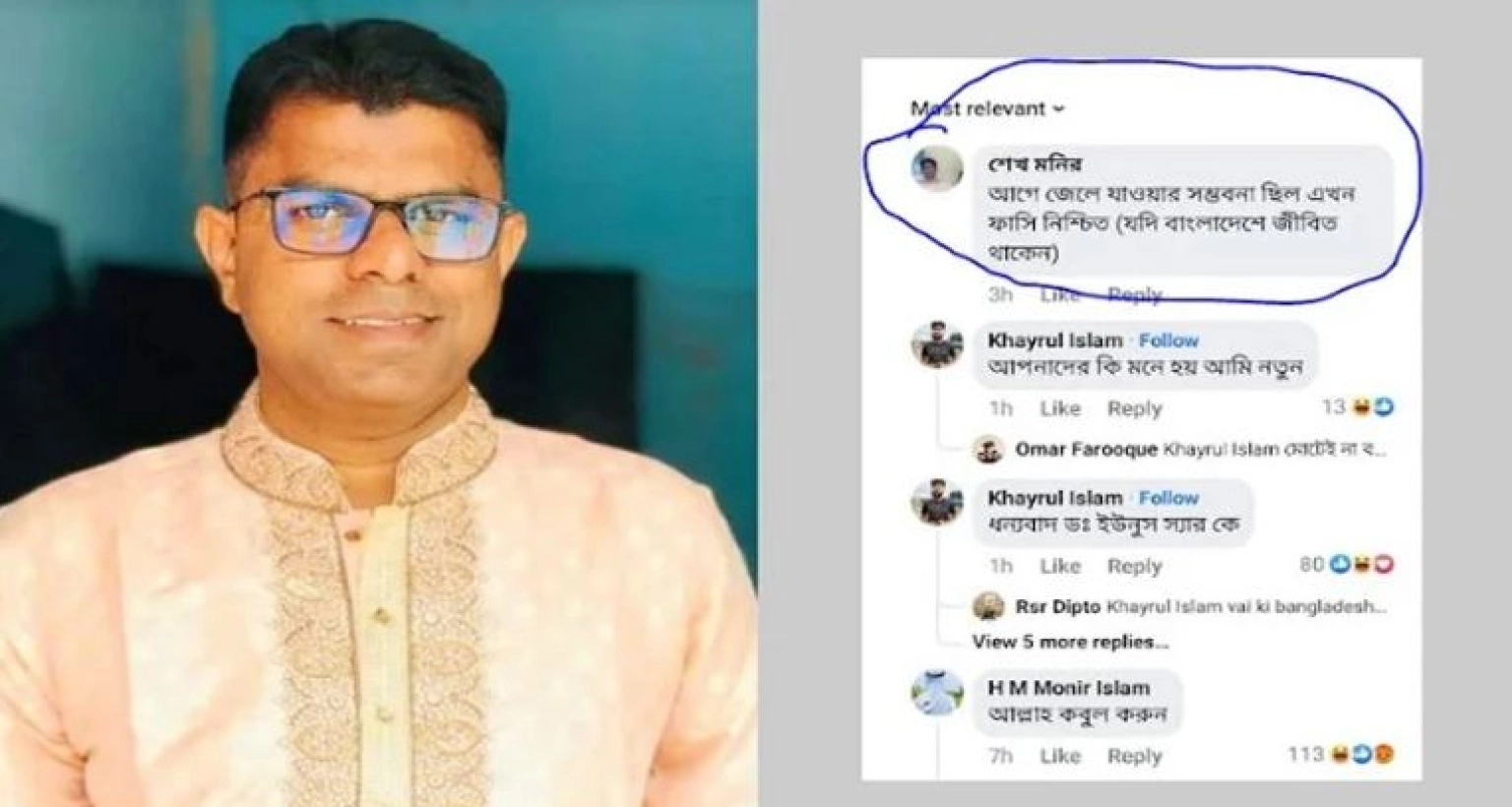 ‘জেলে না গিয়ে বঙ্গভবনে শপথ নিলাম’ এ শিরোনামে একটি জাতীয় দৈনিকে দেওয়া প্রধান উপদেষ্টার সাক্ষাৎকারের অনলাইন ভার্সনে আপত্তিকর এ মন্তব্য করেন এসএম মনিরুজ্জামান। তার মন্তব্যটি ছিল, ‘আগে জেলে যাবার সম্ভাবনা ছিল এখন ফাঁসি নিশ্চিত (যদি বাংলাদেশে জীবিত থাকেন)।’