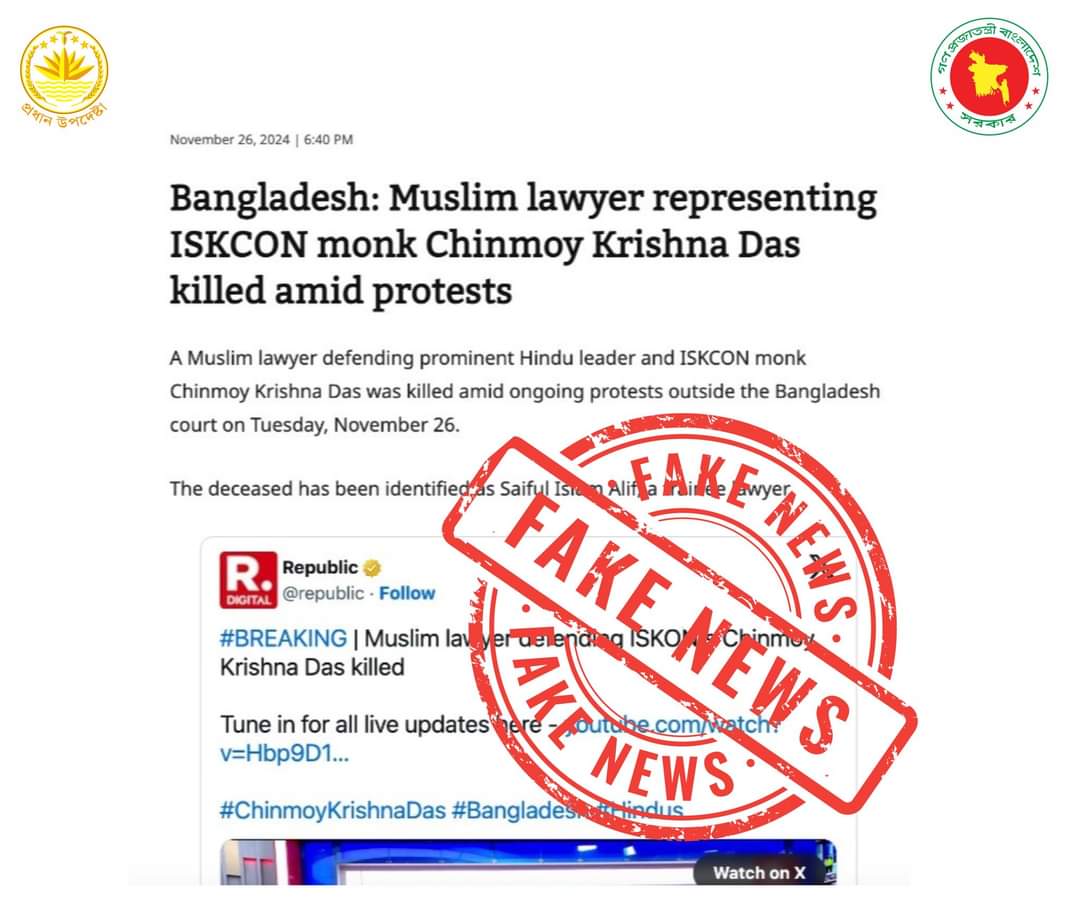 নিহত আইনজীবীকে নিয়ে অপপ্রচার করছে ভারতীয় গণমাধ্যম : প্রেস উইং