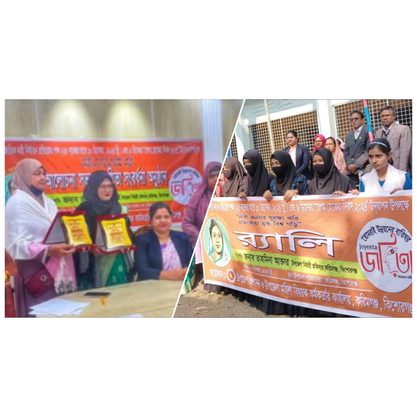 ডেস্ক রিপোর্ট: 'নারী কন্যার সুরক্ষা করি সহিংসতা মুক্ত বিশ্ব গড়ি' প্রতিপাদ্যে কিশোরগঞ্জের করিমগঞ্জে আন্তর্জাতিক নারী নির্যাতন প্রতিরোধ পক্ষ এবং বেগম রোকেয়া দিবস উদযাপিত হয়েছে।