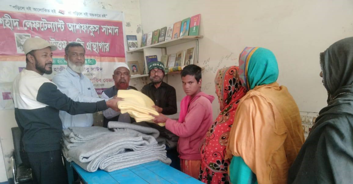 গত বৃহস্পতিবার (১৬ জানুয়ারি)-২০২৫ কিশোরগঞ্জ জেলা প্রশাসক মহোদয়ের অনুদান হিসেবে, জেলা ত্রাণ ও পুনর্বাসন শাখা থেকে কিছু সংখক কম্বল প্রদান করেন এই প্রতিষ্টানে। পরে জেলা প্রশাসক মহোদয়ের অনুদানের কম্বলগুলো অসহায় ও শীতার্ত মানুষের মাঝে বিতরণ করা হয়। এসময় প্রধান অতিথি হিসেবে উপস্থিত ছিলেন গ্রন্থাগারের প্রধান উপদেষ্টা কবি,সাংবাদিক ও তথ্যসংগ্রাহক মোঃ রেজাউল হাবিব রেজা।