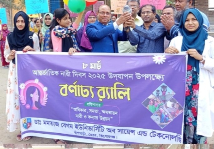 এই প্রতিপাদ্য বিষয়কে সামনে রেখে কিশোরগঞ্জের ভৈরবস্থ বাঁশগাড়ীতে গত ৮মার্চ ডাঃ মমতাজ বেগম ইউনিভার্সিটি অব সায়েন্স এন্ড টেকনোলজি-তে এক আলোচনা ও বর্ণাঢ্য র্যালি আয়োজনের মাধ্যি দিয়ে আন্তর্জাতিক নারী দিবস-২০২৫ উদযাপন করা হয়।