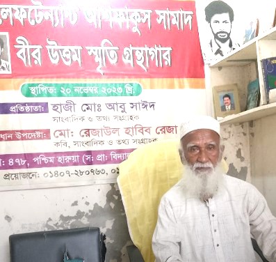 গুরুদয়াল সরকারি কলেজ সংলগ্ন আশফাকুস সামাদ স্মৃতি গ্রন্থাগারের আলোচনা সভায় সভাপতিত্ব করেন এর প্রতিষ্ঠাতা হাজী মোহাম্মদ আবু সাঈদ।