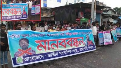 করআন অবমাননার প্রতিবাদে রাজশাহীতে জাতীয় সাংবাদিক সংস্থার মানববন্ধন