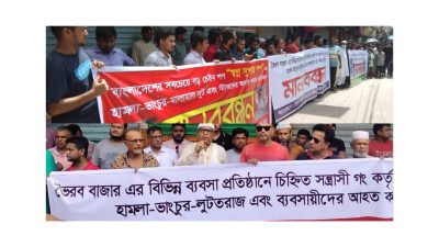 মোঃ সারোয়ার জাহান বিশেষ সংবাদদাতা ভৈরব বাজারে বিভিন্ন ব্যবসা প্রতিষ্ঠানে হামলা, ভাংচুর ও লুটপাটসহ ব্যবসায়ীদের আহত করার প্রতিবাদে মানবন্ধন অনুষ্ঠিত হয়েছে। আজ দুপুরে ভৈরব বাজার জামে মসজিদ রোডে হামলাকারীদের দ্রুত read more